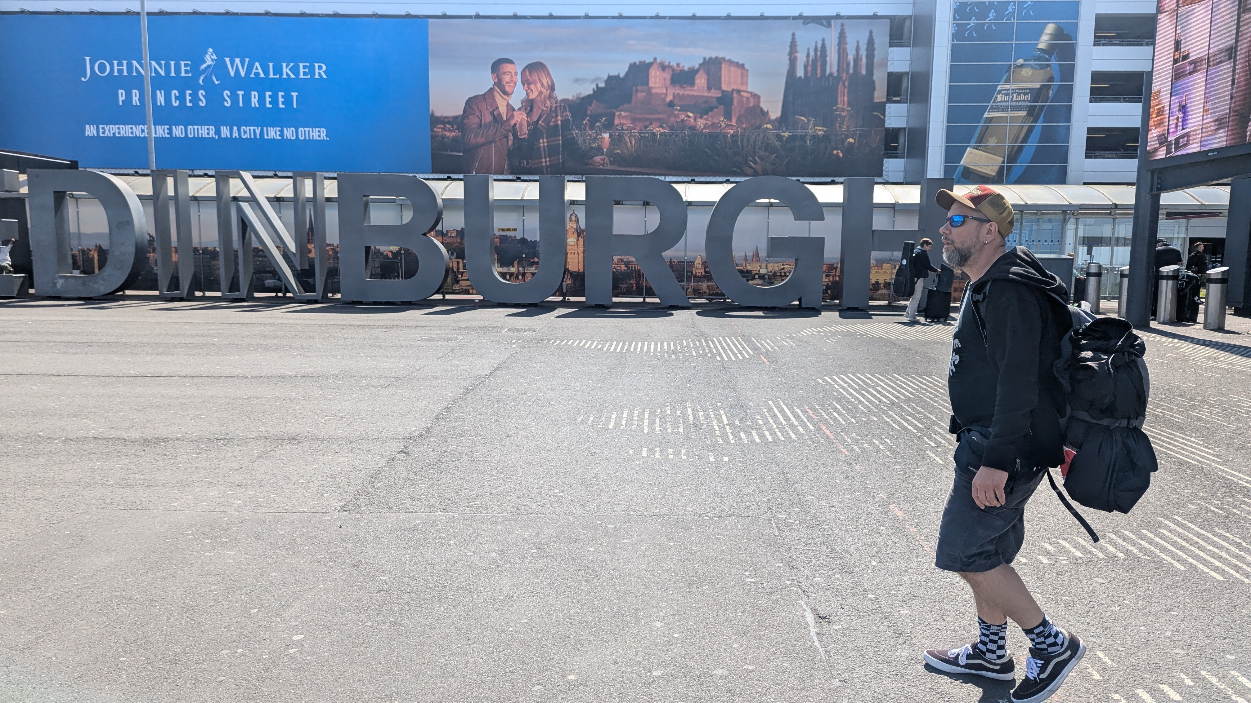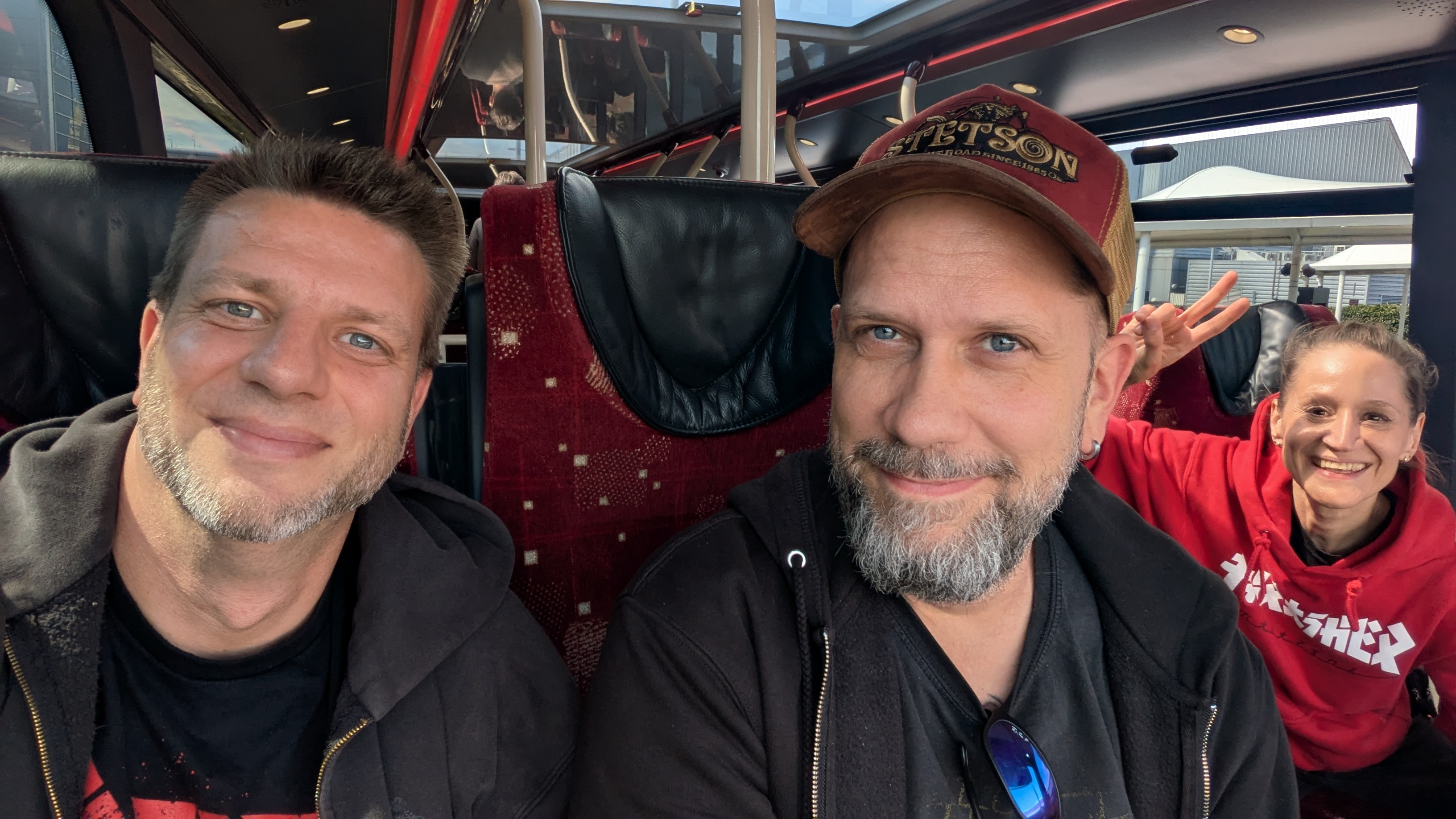 11:45 Uhr. Wir erreichten den Kiss & Ride Parkplatz des Flughafen Düsseldorf. Ein „Kiss“ und los ging es weiter zu Dritt. Check’in online erledigt, nur Handgepäck dabei und so standen wir direkt im in der Schlange zur Sicherheitskontrolle. Nicht nur der Sicherheitscheck verlief unproblematisch, auch das UK ETA Dokument war bei allen Dreien gültig. Seit April 2025 ist es nämlich notwendig, ein elektronisches VISA Verfahren bei der Einreise nach Großbritannien zu durchlaufen. Nur Budze stand leicht erschrocken vor der Schleuse, die sich nach einem Scan seiner digitalen Bordkarte nicht öffnen wollte. Grund hierfür. Seine Partnerin Silke hatte beide Bordkarten auf ihrem Handy, scannte versehentlich den QR-Code ihres Partners und stand als „Jens B.“ auf der „richtigen“ Seite der Schleuse. Aber kein Problem, schnell das Handy rübergereicht und das ganze Spielchen umgedreht und so konnte auch Budze als „Silke R.“ die weiterreise antreten. Ich frühstückte im Flughafen Restaurant eine Spaghetti Bolognese und wir stießen auf die Reise an.