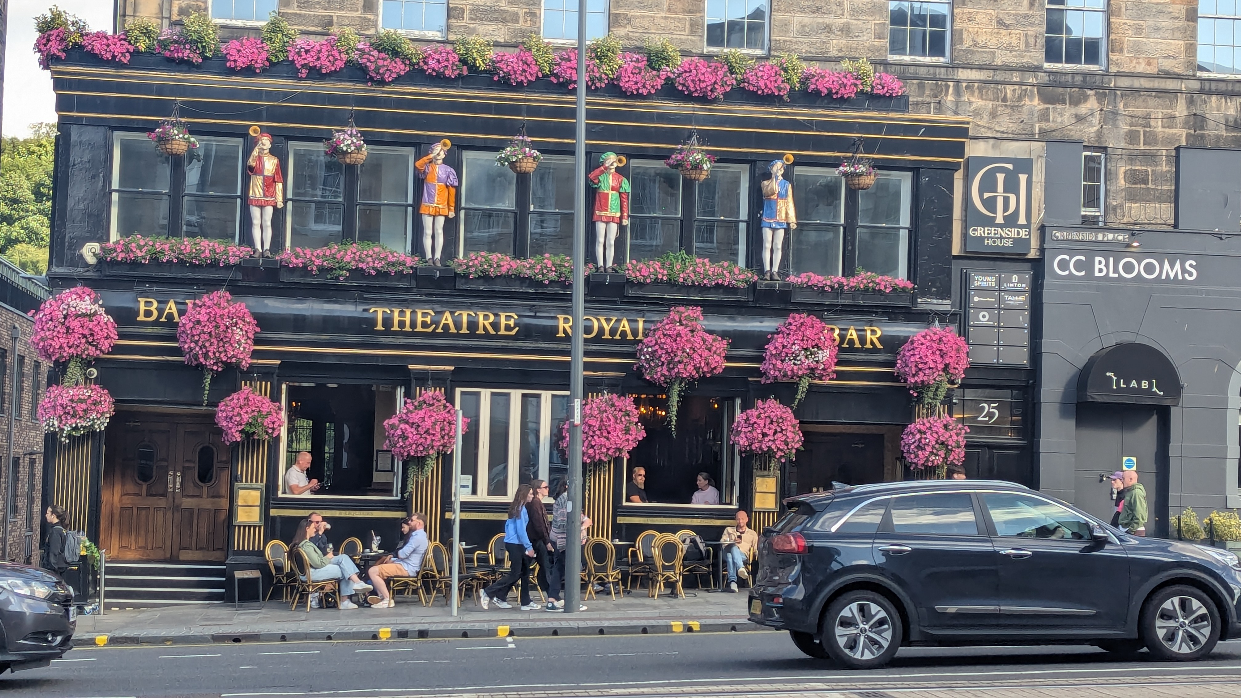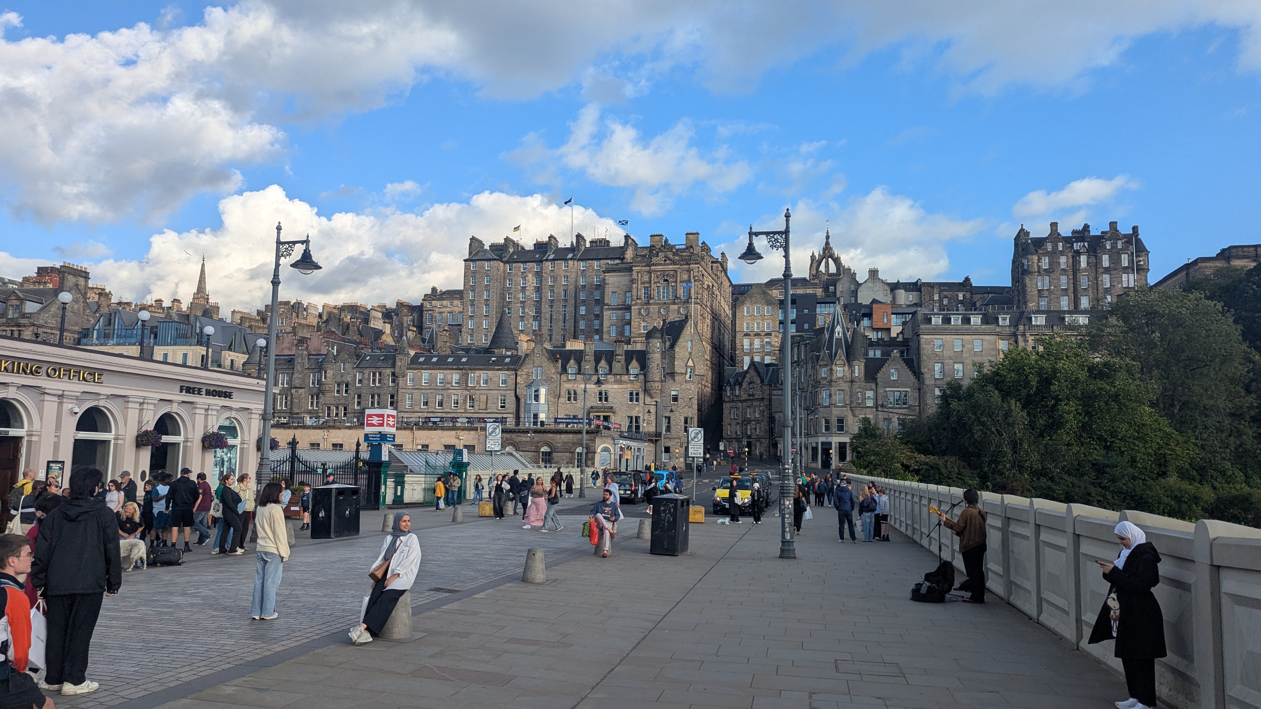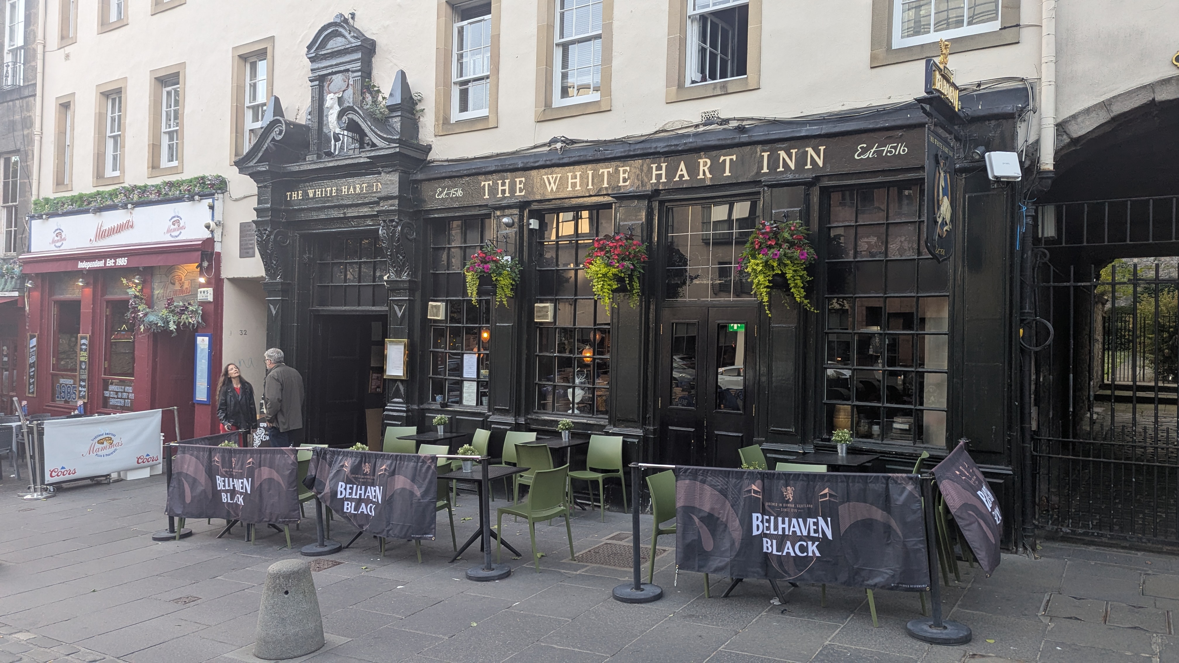 Etwas irritiert hat mich die Begeisterung für diesen Platz, die ausschließlich von uns Touris geäußert wurde. Die alten Fassaden waren von Stromkabeln gesäumt, zerrissene Sonnenschirme standen wild herum, Müll lag an jeder Bank und Aufkleber zierten jede Wand und jede Telefonzelle. Ich mag das! Aber etwas komisch ist es schon, wenn Essener diesen Ort als schön und interessant definieren, die Viehofer Straße in der Essener Innenstadt aber völlig ablehnen und hässlich finden. Ehrlich gesagt, ich entdeckte einige parallelen. Aber hier störts keinen… vor allem keinen Touristen. Es wird darüber hinweg gesehen und gehört einfach dazu. Insbesondere dann, wenn die Stadtführerin darüber berichtet, wie dieser Ort und die benachbarten Straßen Ende des 19. Jahrhunderts als die Slums von Edinburgh bezeichnet wurden. Und so ignorierten auch wir den Müll und gingen in den ältesten Pub der Stadt, ins The White Hart Inn, um ein Bierchen zu trinken und Livemusik zu hören. Der urige Pub bietet Geschichten einer Portion Gänsehaut. Angeblich ist es nicht nur die älteste, sondern auch die am meisten heimgesuchte Kneipe der Stadt.