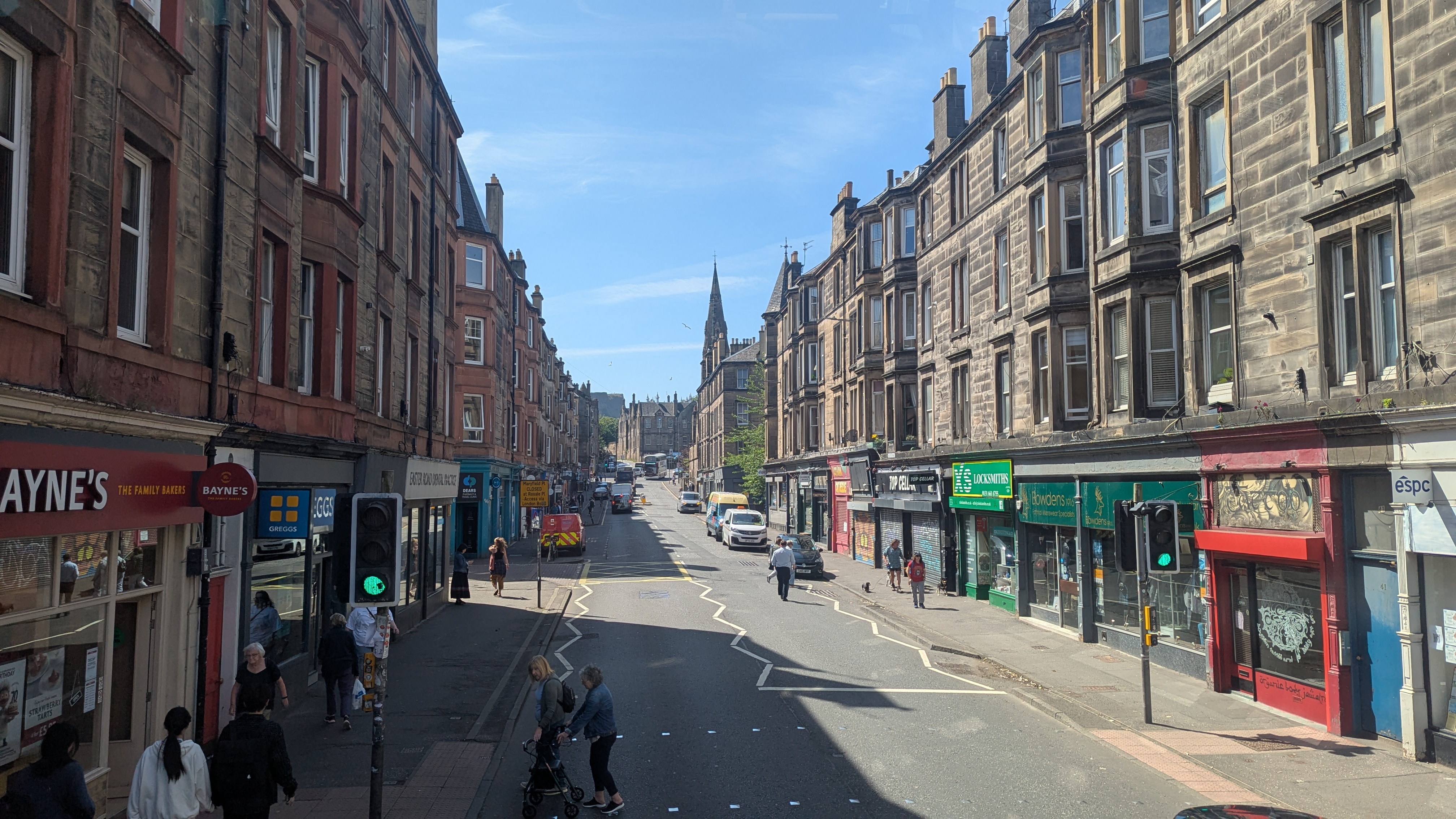 Zwei Schlafzimmer, zwei Bäder, Wohnzimmer, Küche, kleiner Balkon. Schön gefaltete und ausreichende viele Handtücher, dafür semi-sauber, sodass Budze und Silke das ganze Geschirr vorsichtshalber nochmal per Hand spülten. Unser Standort war also nicht direkt in der belebten Altstadt, dafür aber mit Sicht auf das Stadion „Easter Road“, das nur 100 Meter entfernt lag, eigekesselt von Mehrfamilienhäusern. Entlang der Straße sahen wir fast durchgehend kleine Kästchen mit Zahlenschlössern, die ein Indiz dafür sind, wie viele Airbnb-Wohnung hier vermietet werden. Denn die Kästchen beinhalten die Wohnungsschlüssel, die die Mieter per vorher zugeschickten Zahlencode öffnen können und damit ohne persönlichen Kontakt mit dem Vermieter, Zugang zur Wohnung erhalten.