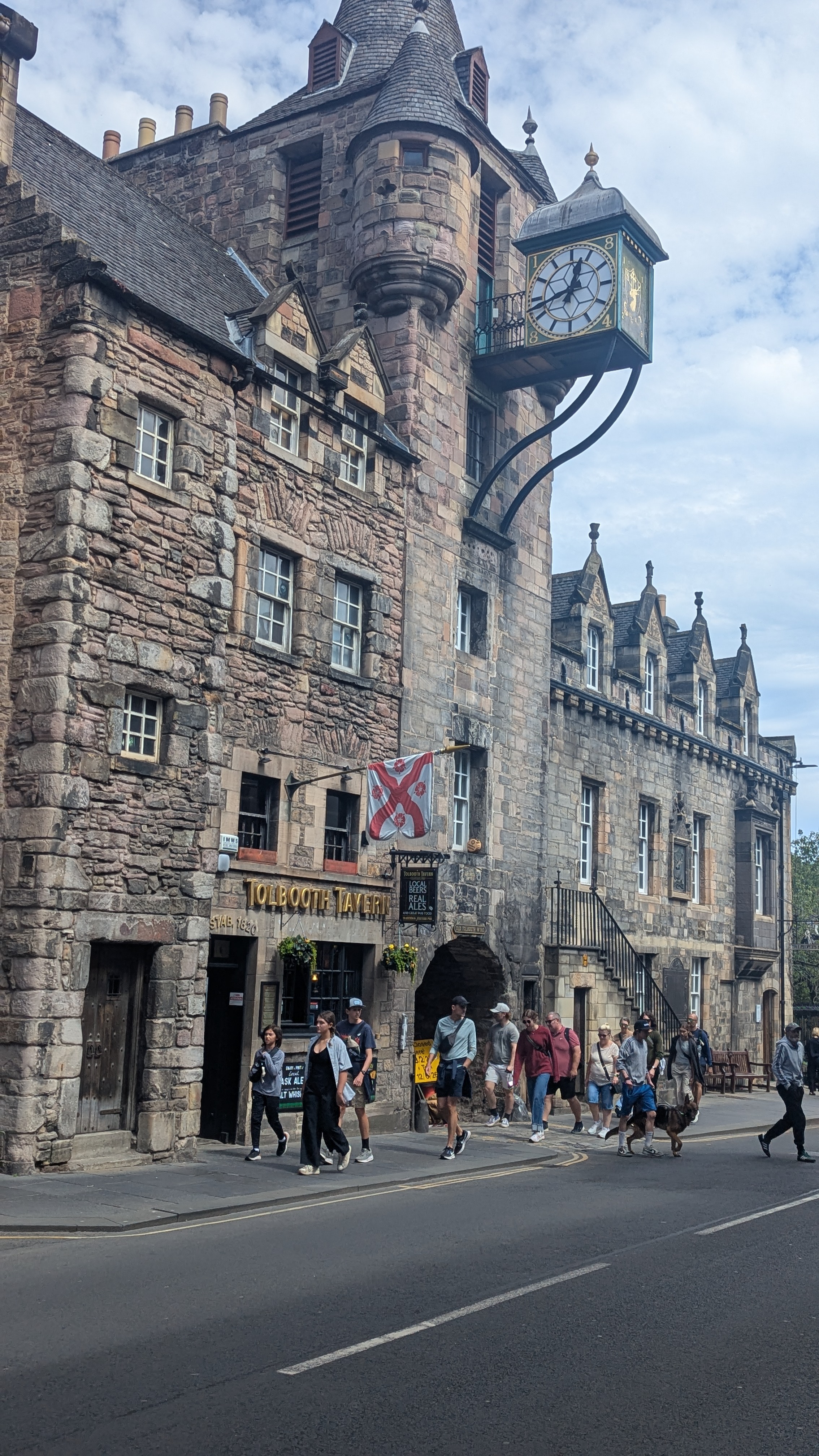 Wir verließen das Pub in Richtung Victoria Street, Sie gilt als einer der fotogensten Straßen der Stadt und steckt voller kleiner Überraschungen. Die heutige Victoria Street, früher bekannt als West Bow, war über Jahrhunderte hinweg die wichtigste Einfallstraße für alle, die aus dem Westen, Norden oder Südwesten nach Edinburgh kamen. Ihr sanft geschwungener Verlauf machte sie ideal für Fuhrwerke, die sich sonst kaum durch die steilen, engen Gassen der Altstadt bewegen konnten. Noch immer führt sie vom Grassmarket hinauf zur Royal Mile – vorbei an farbenfrohen Fassaden, kleinen Läden und historischen Bauten. Wer genau hinsieht, entdeckt über alten Türen eingravierte Jahreszahlen wie 1616 oder 1720. Besonders beeindruckend: Ein Haus mit einer Bäckerei im Erdgeschoss stammt noch aus dem 16. Jahrhundert – ein echtes Stück Stadtgeschichte.