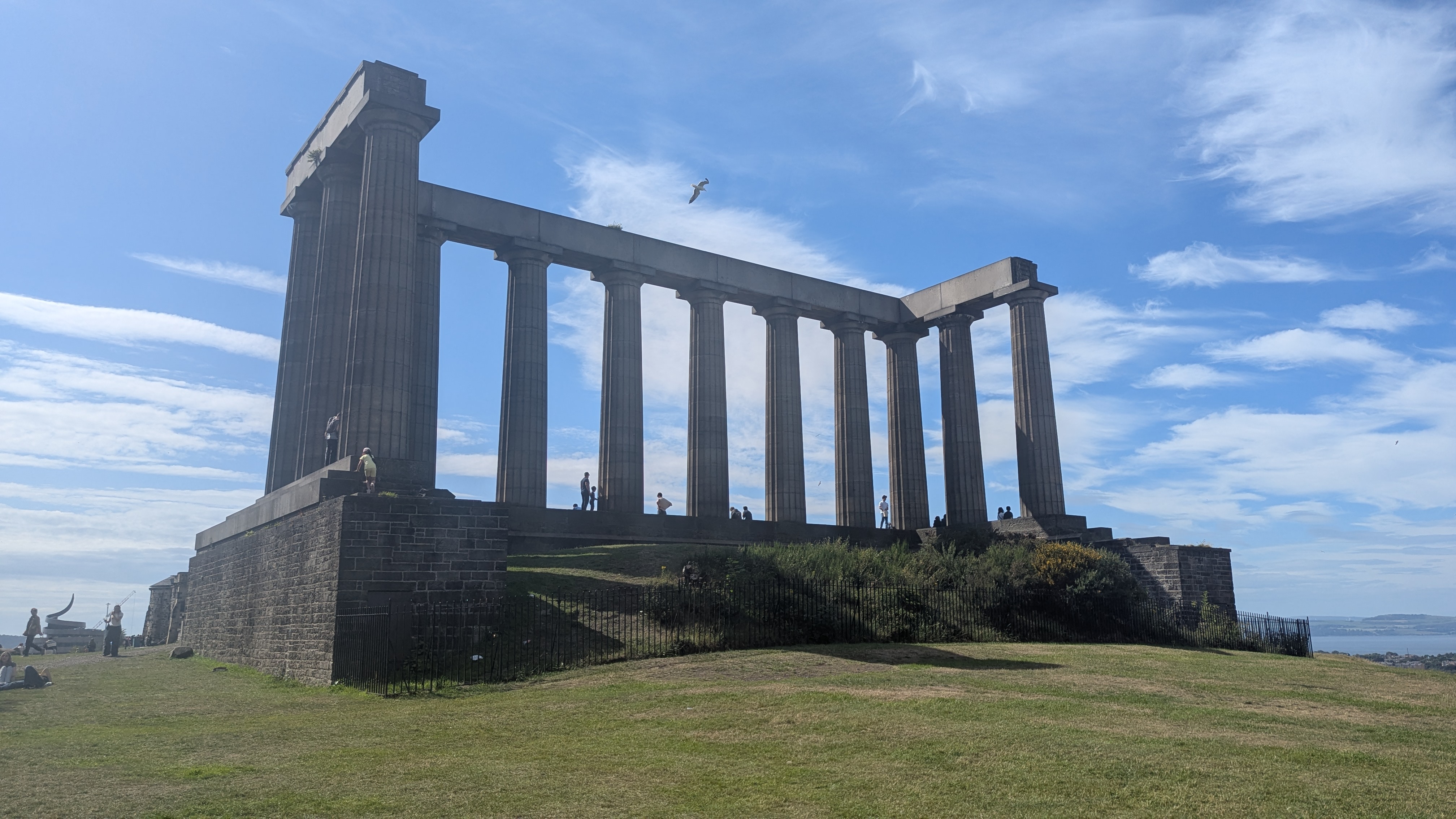 Auf Carlton Hill erlebt man Stadtgeschichte. Besonders ins Auge fällt nämlich das National Monument. Zwölf monumentale Säulen, die wie eine Tempelruine wirken. Ursprünglich sollte daraus ein groß angelegtes Erinnerungsbauwerk für die Gefallenen der Napoleonischen Kriege entstehen, inspiriert vom Parthenon in Athen. Doch aus finanziellen Gründen würde das Bauwerk nie fertiggestellt.