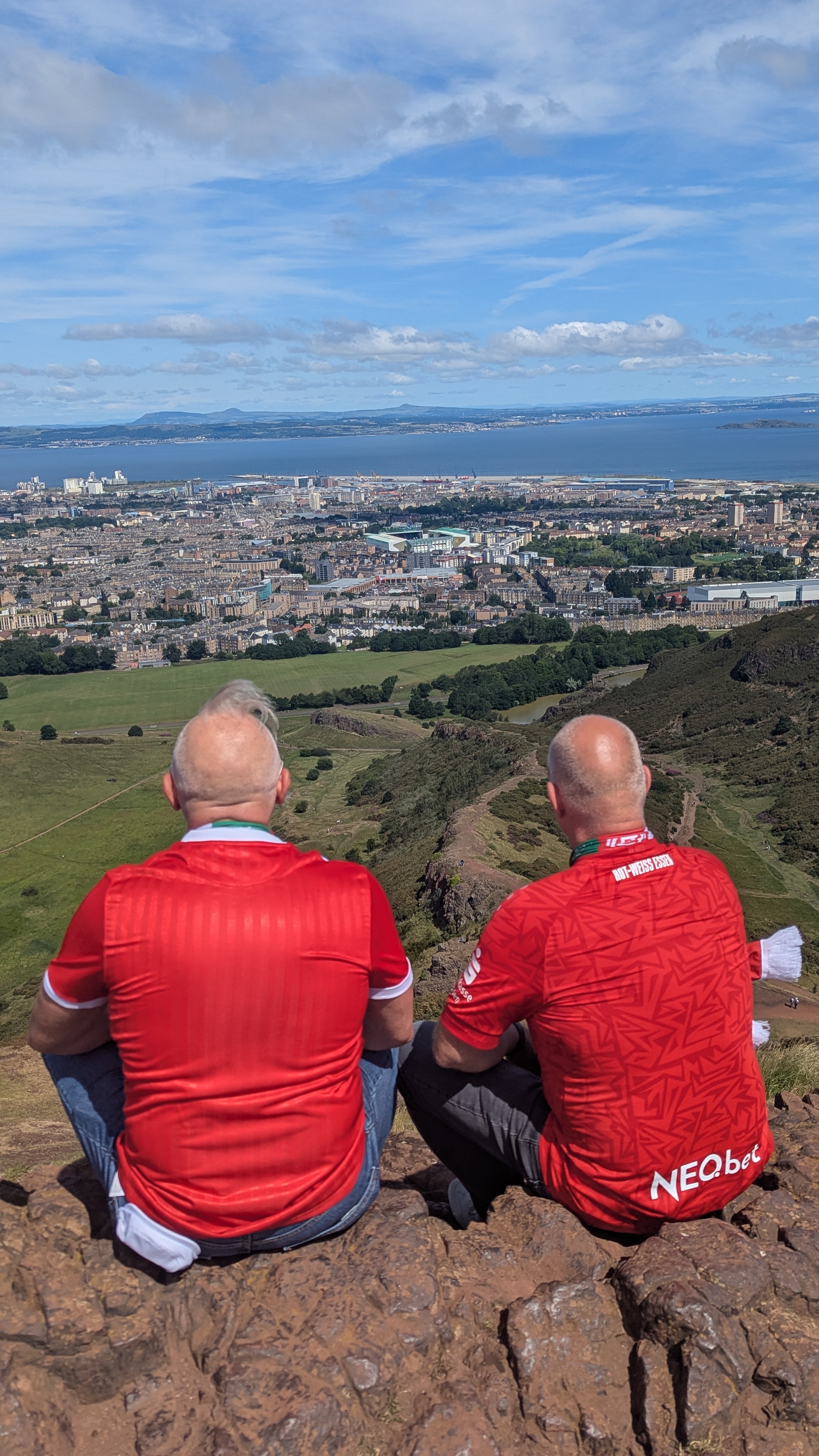 Am Flughafen angekommen sahen wir in das ein oder andere müde Gesicht von RWE-Fans, die darauf schließen ließen, dass die Feier entweder bis in die frühen morgen Stunden ging, oder bei denjenigen, die sich das Konterbier bestellten, eigentlich noch gar nicht aufgehört hatte. Auch Richard, Chef der Essen Marketing, den wir gestern schon beim Fanmarsch getroffen hatte, trafen wir am Flughafen wieder. Am Sicherheitscheck traf ich auch Oberbürgermeister und meinen Chef Thomas Kufen, der natürlich auch diesem Spiel angereist war und dadurch die Amtsgeschäfte in Essen kurz ruhen ließ oder besser gesagt, von unterwegs aus die wichtigsten Sachen erledigte. Es war ein toller Trip nach Edinburgh und durch unsere frühere Anreise war es möglich, Fußballkultur mit Stadtkultur zur verbinden. In diesem Sinne: „Hibs Away, uh huh, uh huh, I like it“ und „NUR DER RWE“!