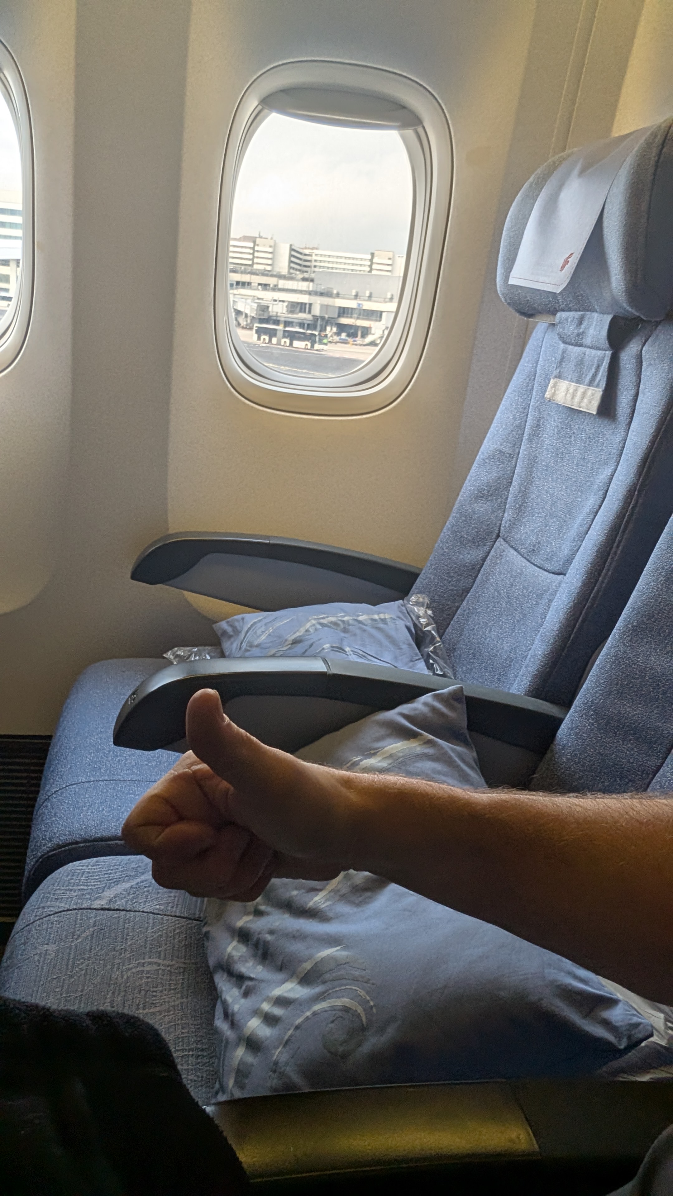 Das Boarding ging schnell über die Bühne und kaum zu glauben aber wahr, die Sitze neben mir im Reihe 48 waren frei und kein Kleinkind war in Sicht. Das könnte ein entspannter Flug werden.
