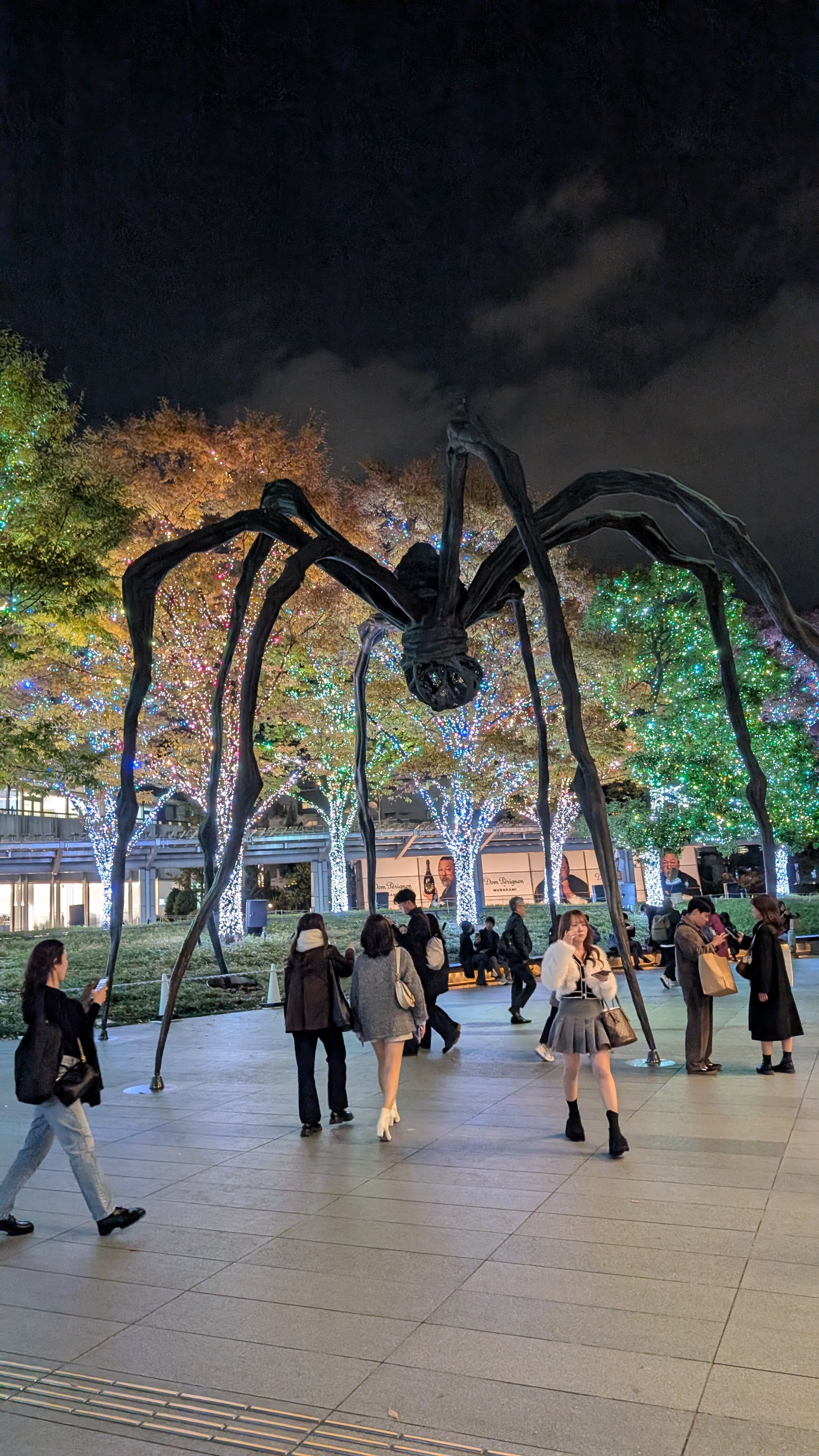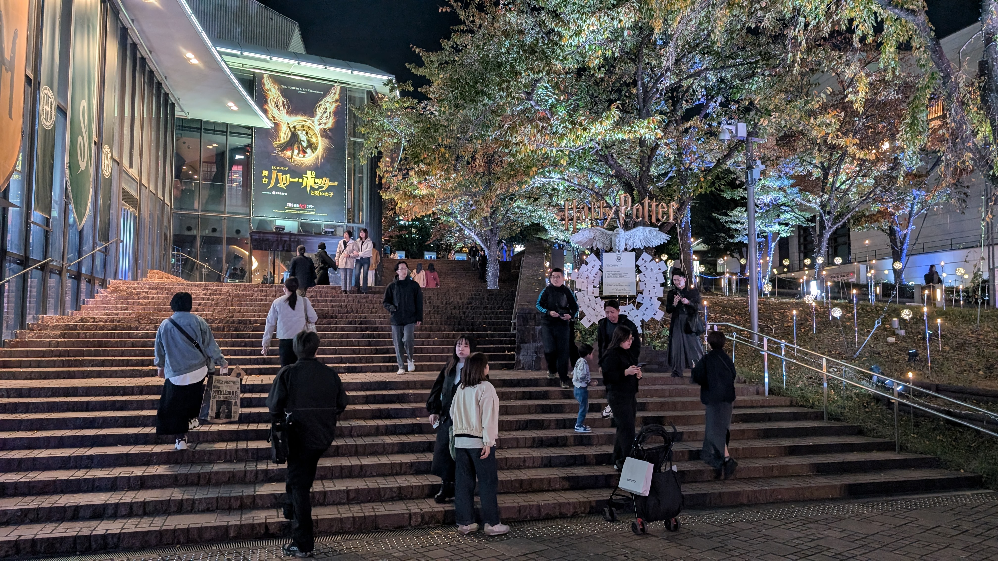 An Schlaf war nicht zu denken, obwohl ich seit dem Vortag um 7 Uhr auf den Beinen war. Und deshalb schlich ich Abends noch einmal um die Häuser von Akasaka, das im Bezirk Minota liegt. Rund um den Bahnhof von Akasaka und dem Harry Potter Plaza befinden die entsprechenden Themencafés, Harry Potter Shops usw. Natürlich ein Fotospot für Fans der Geschichten. Ohne zu wissen wohin ich wollte, lief ich einfach weiter und landete in Roppongi. Hier war selbst am späten Abend weitaus mehr los. Rund um die Roppongi Hills Towers standen die Leute an, um im Hello Kitty Picnic Park zu essen oder sich vor den bunt leuchtenden Bäumen zu fotografieren.
