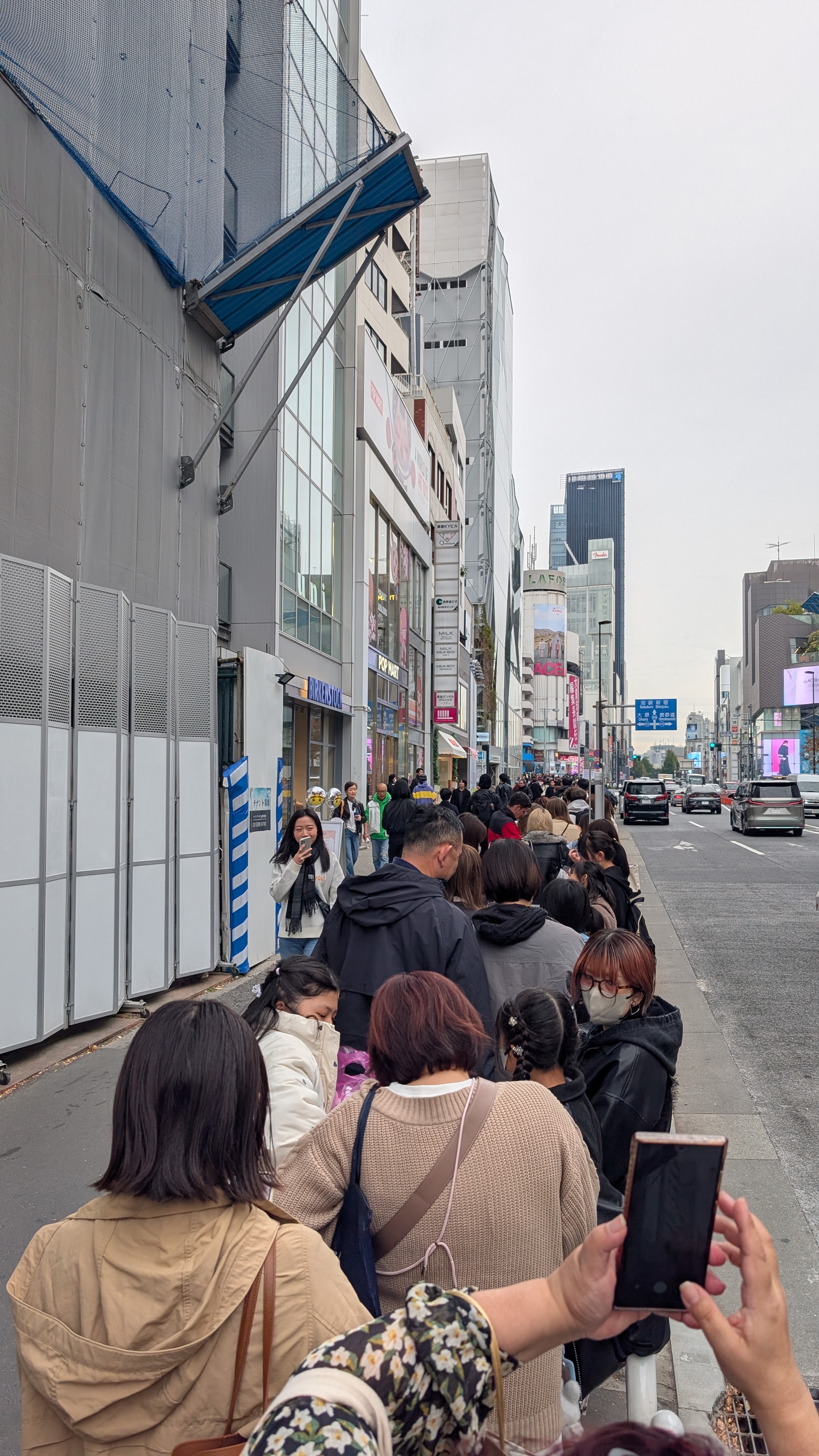 Deshalb fuhr ich mit der Metro zum Pop Mart Store Harakuju und war baff. Eine 100 Meter lange Schlange mir Sicherheitspersonal und Guides, die Schilder hoch hielten, die den Beginn und das Ende der Schlange markierten. 45 Minuten dauerte das Anstehen. Aber schon von draußen hatte ich gesehen, wo die Labubus platziert waren.