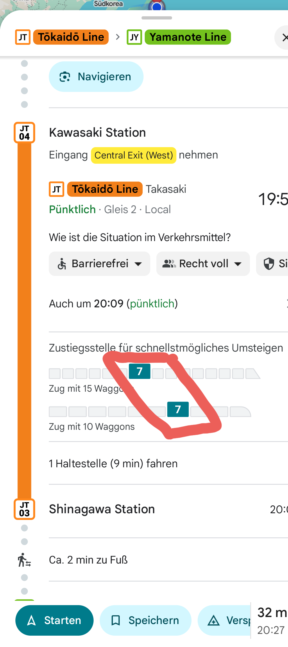 Mal schauen was in Shibuya so geht. Um die Bahn am Anschlussbahnhof Shinagawa zu bekommen, folgte ich der Google Maps Anweisung und wechselte von meinem Einstiegsstandort Wagen 15 zu Wagen 7. Gut, dass hier wirklich alles ausgezeichnet ist.