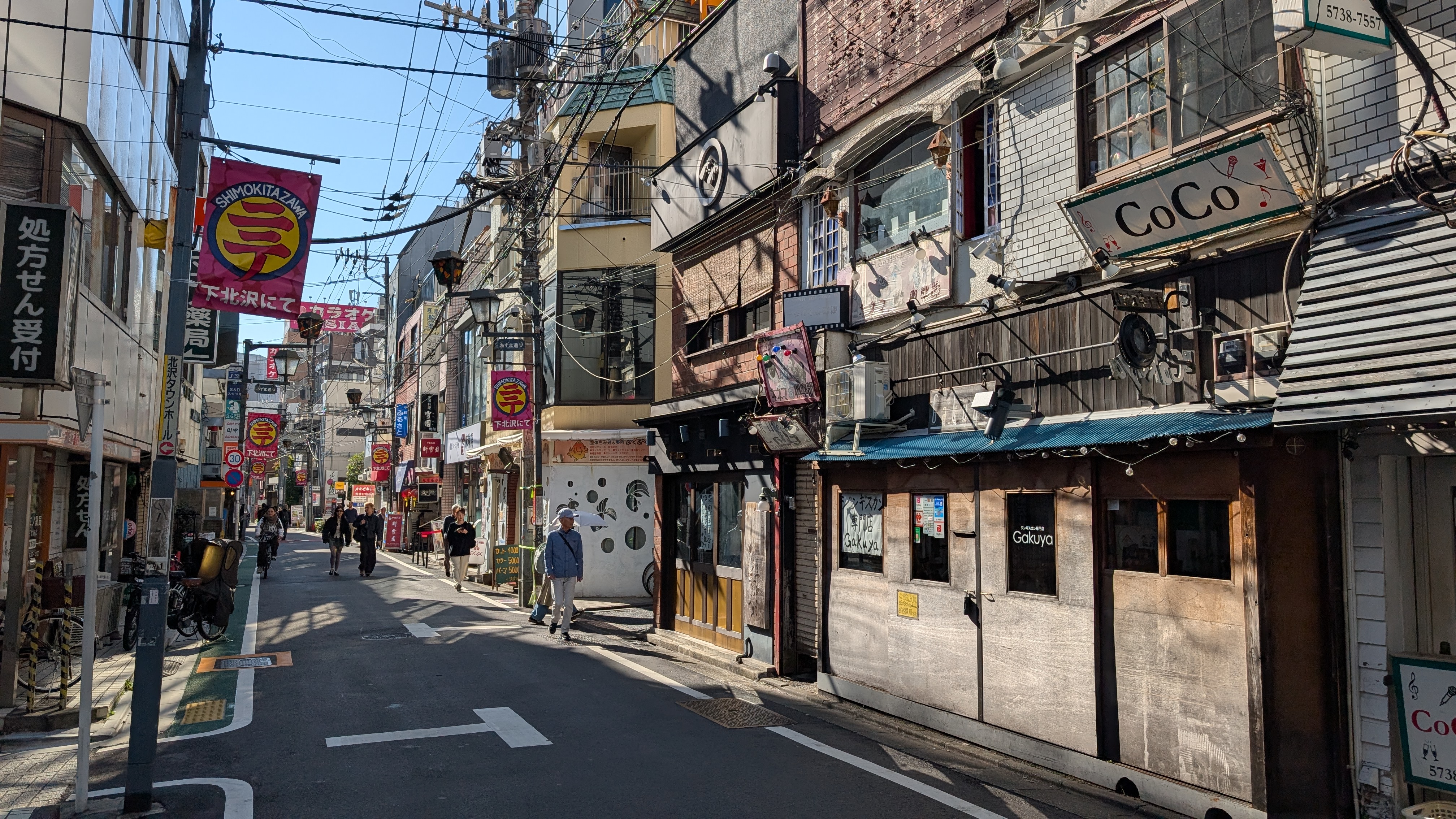 Ich begleitete Kenji noch ein Stück auf seinen Weg. An der Haltestelle verabschiedeten wir uns und er zeigte mir noch den Weg zum richtigen Gleis Richtung „Shimokitazawa, ein Stadtteil, der fast nebenan lag. Shimokitazawa ist das Szeneviertel. Kleine und großer Plattenläden, Indie-Rock und Jazz-Kneipen, Secondhand-Shops, Literatur-Cafes.