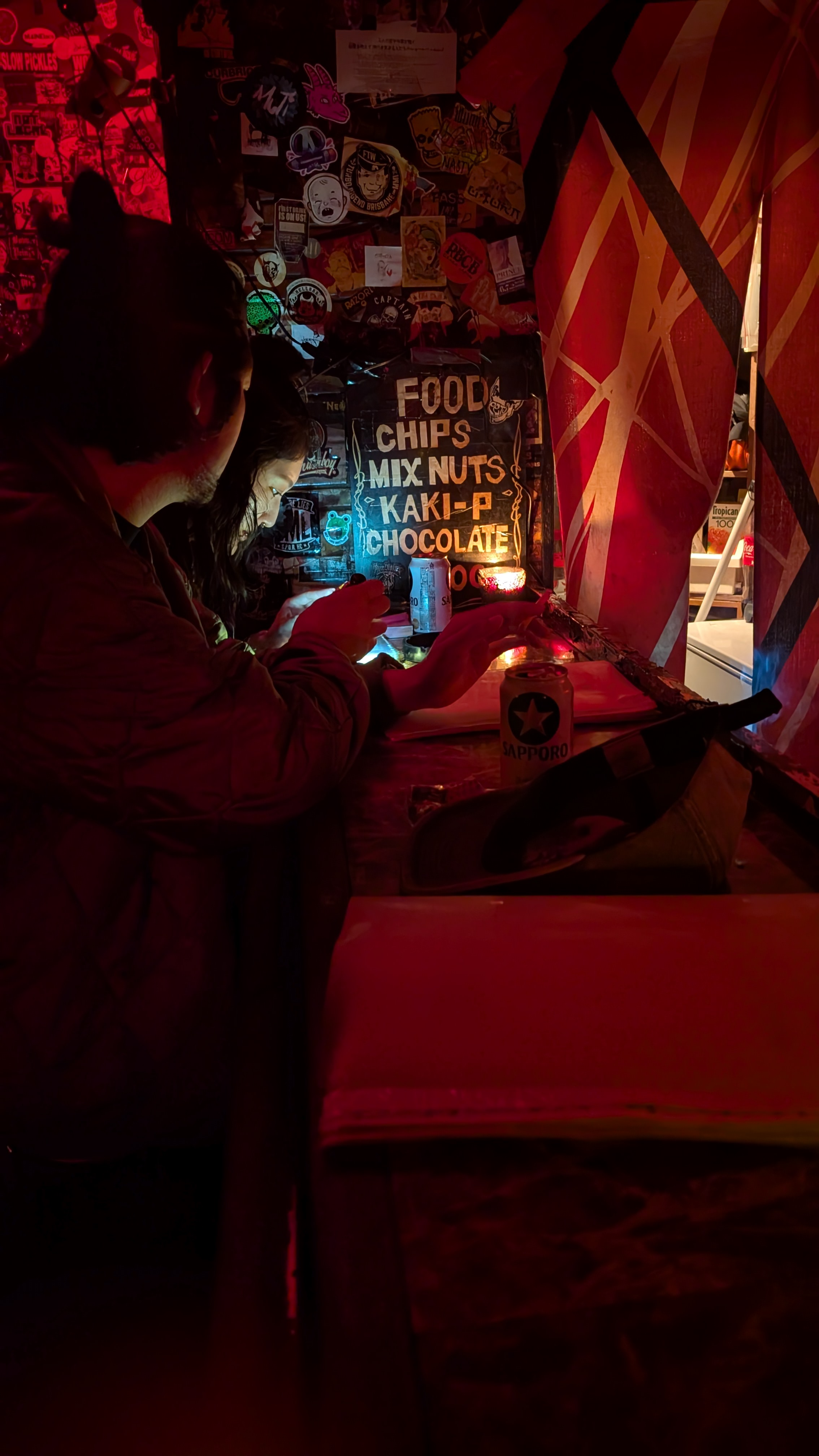 Ich hatte später am Abend dann mein temporäres Zuhause-Gefühl gefunden. Die Rock Mother Bar in Shinjuku. Etwas kleiner als mein Hotelzimmer, das wie ihr wisst 11 qm hat. Pflicht, das Sapporo Bier und Tequila, dazu aus der handschriftlich geschrieben Playlist auswählen, die bestimmt zwanzig Seiten umfasst und in Klarsichtfolien geschützt in einem Schnellhefter auf der Theke ausliegt.