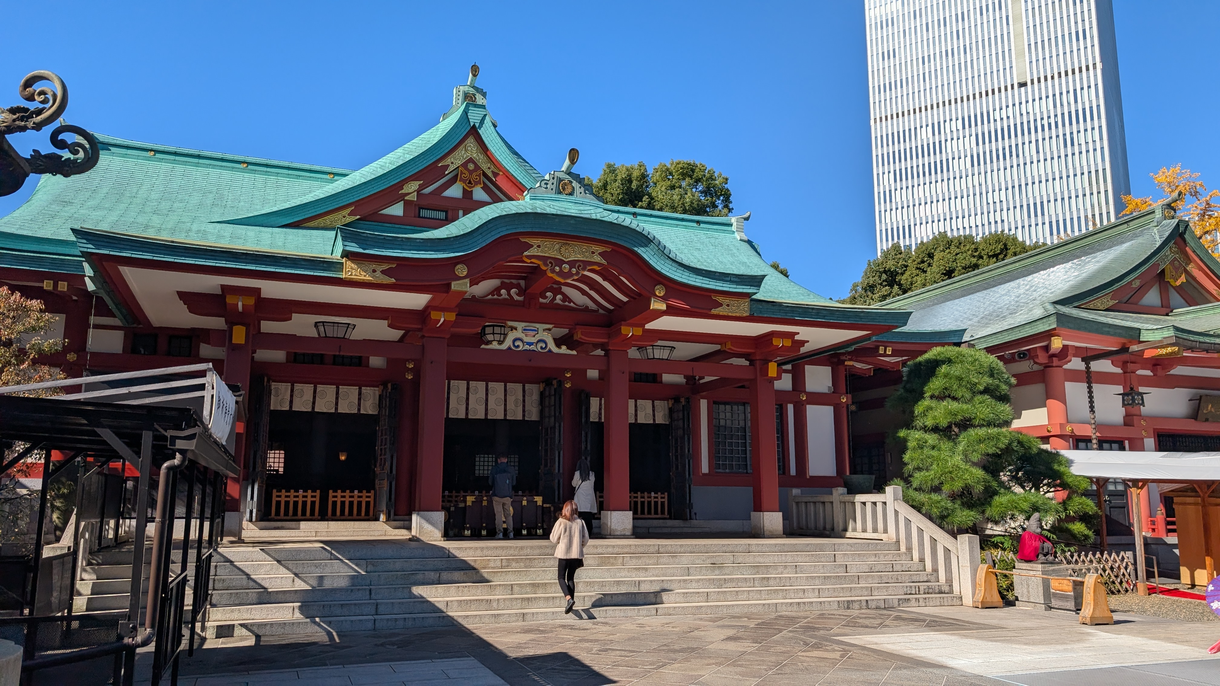Aber Achtung, Linksverkehr. Da fast ein jeder Ecke ein Verkehrspolizist steht und so gut wie der Zebrastreifen zusätzlich abgesichert wird, braucht man sich keine Gedanken machen, für längere Zeit falsch zu fahren. Entweder es regelt ein Crash oder einer der Polizisten. Ich hatte noch etwas Zeit bis zum Einlass und besuchte deshalb den Nishikubo Hachiman Shrine, der unmittelbar neben dem Gebäudekomplex Azubadai Hills zu finden ist, in dem sich auch das Museum befindet und der eingebettet zwischen Hochhäusern liegt.