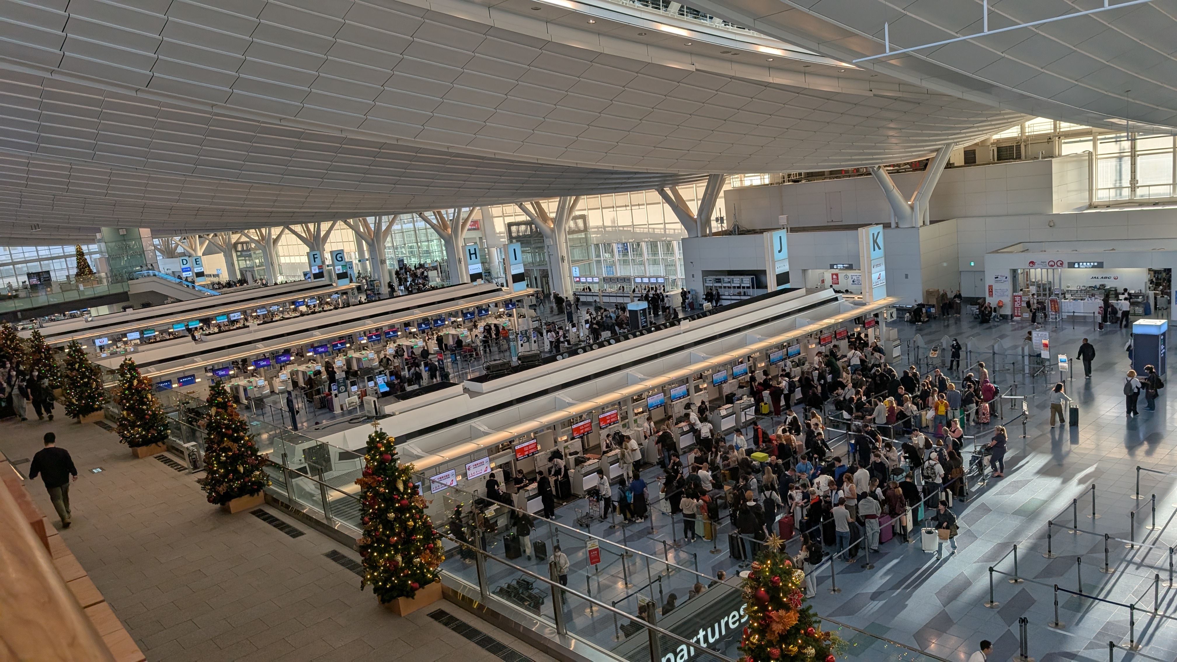 Nachdem ich das Flugzeug verlassen hatte ging’s durch den Sicherheitsscheck in eine gefühlt kilometerlange Halle. Bewaffnet mit einem „HotLatte“ von Starbucks an Gate 19 ging es über mehrere Fahrsteige bis Gate 35. Mist, hier gab es natürlich keine Shop mit Snacks und 6 Stunden bis zur Landung in Tokio wollte ich nicht warten. Also 1,2 Kilometer durch das Terminal zurück zu Starbucks.
